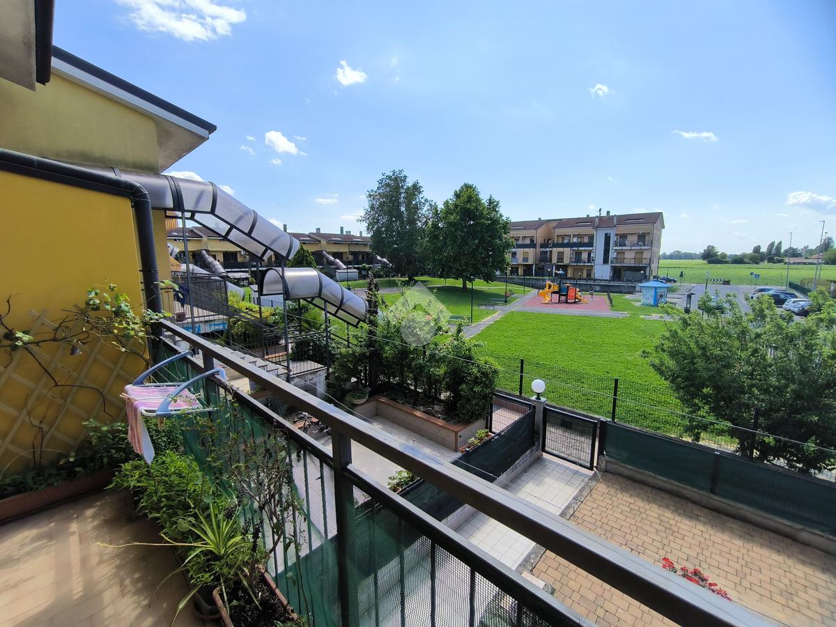MEDIGLIA: In zona residenziale vicinanze servizi di prima necessità, proponiamo in contesto realizzato negli anni 2000 quadrilocale disposto su due livelli cosi composto: Ingresso in soggiorno con cucina a vista e accesso al terrazzo, bagno finestrato con vasca e camera matrimoniale con accesso al balcone. Salendo al piano superiore troviamo una camera da letto con balcone, secondo bagno finestrato con doccia e la cameretta con balcone. L' immobile è dotato di split d'aria condizionata, tende da sole e la caldaia è stata sostituita. Completa la soluzione il box singolo posto al piano seminterrato.